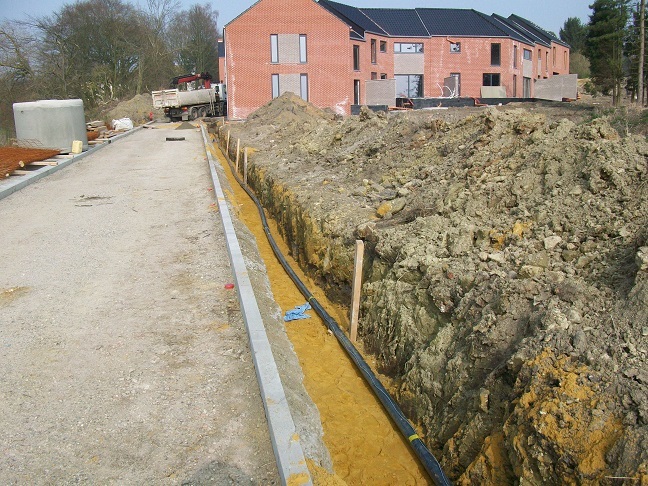 Il y a de plus en plus de terrains à lotir. Ceux- ci doivent obligatoirement être équipés en eau, gaz et électricité pour être vendus. Nous assurons donc les travaux d’extension pour les conduites d’eau dans les lotissements nouvellement bâtis..
